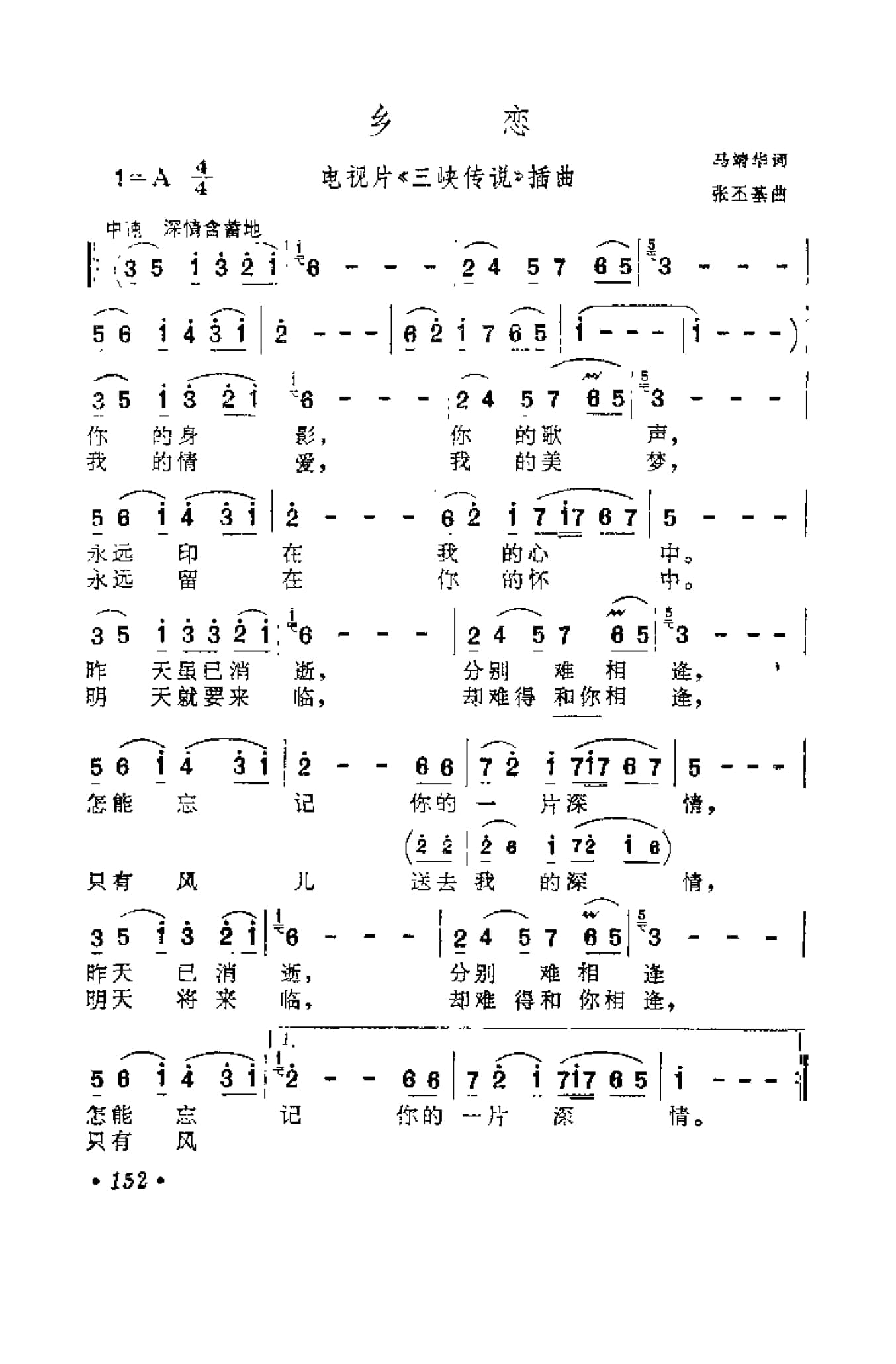 影视剧曲谱:乡 恋(电视片《三峡传说》插曲)