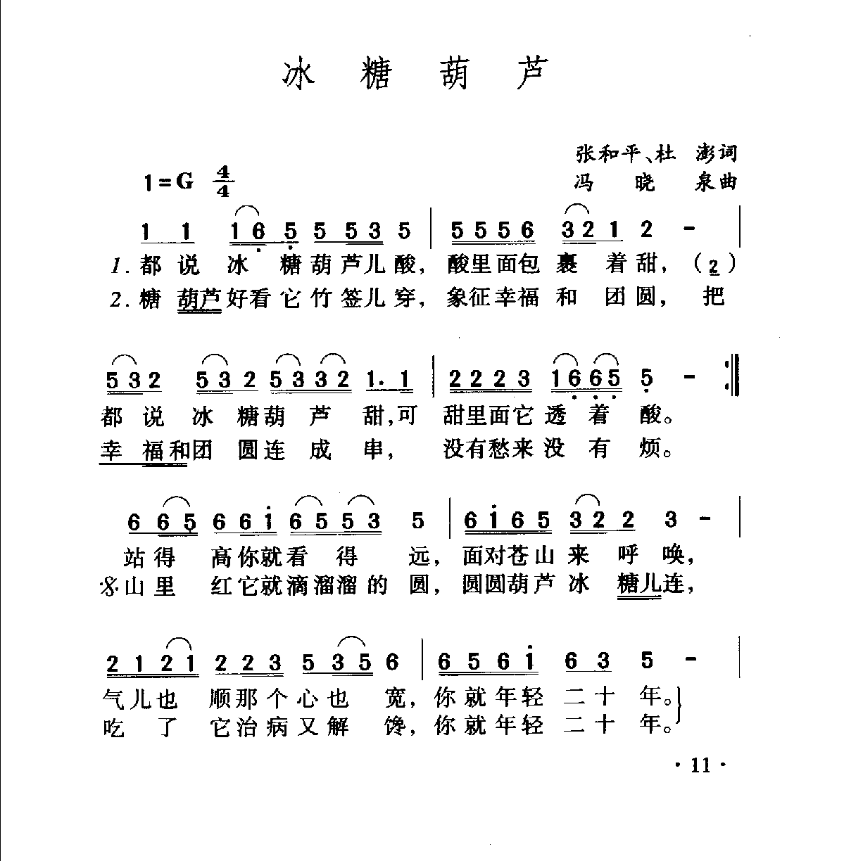 中国名歌500首乐谱:冰糖葫芦张和平、杜澎冯晓泉曲
