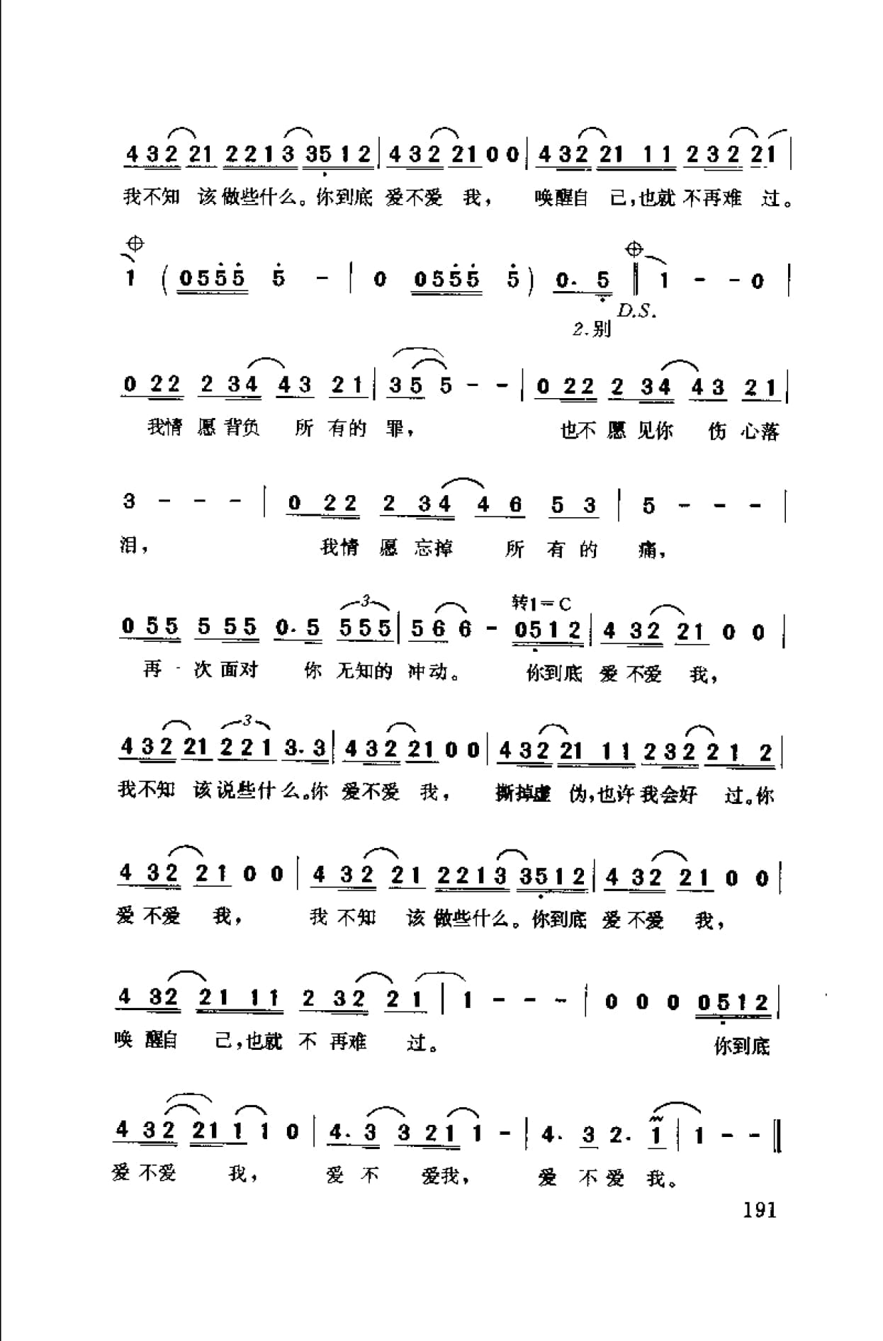 简谱:爱不爱我·1998零点乐队词曲(零点乐队演唱)