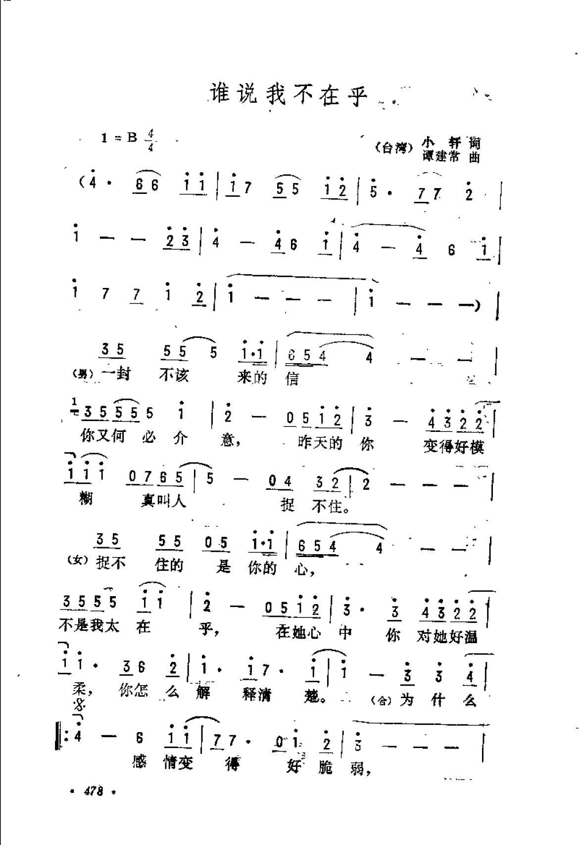 谁说我不在乎(台湾)小轩词 谭建常曲简谱歌词是曲谱查询网于2025年02月13日 14:37:49更新在乐谱大全频道中的内容,收录在乐谱大全栏目中;曲谱查询网分享的谁说我不在乎(台湾)小轩词 谭建常曲简谱五线谱高清图片,欢迎在线免费下载;曲谱查询网无需注册,即可直接下载海量歌曲谱与乐器学习相关资料。