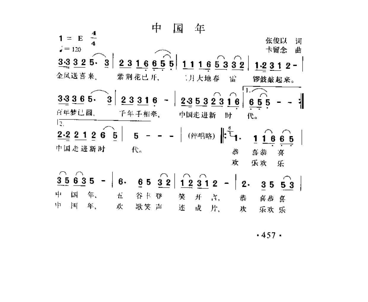 名称:中国年 张俊以词 卡留念曲国家:中国分类:曲谱子类:歌谱乐谱类型:简谱/五线谱文件格式:jpg