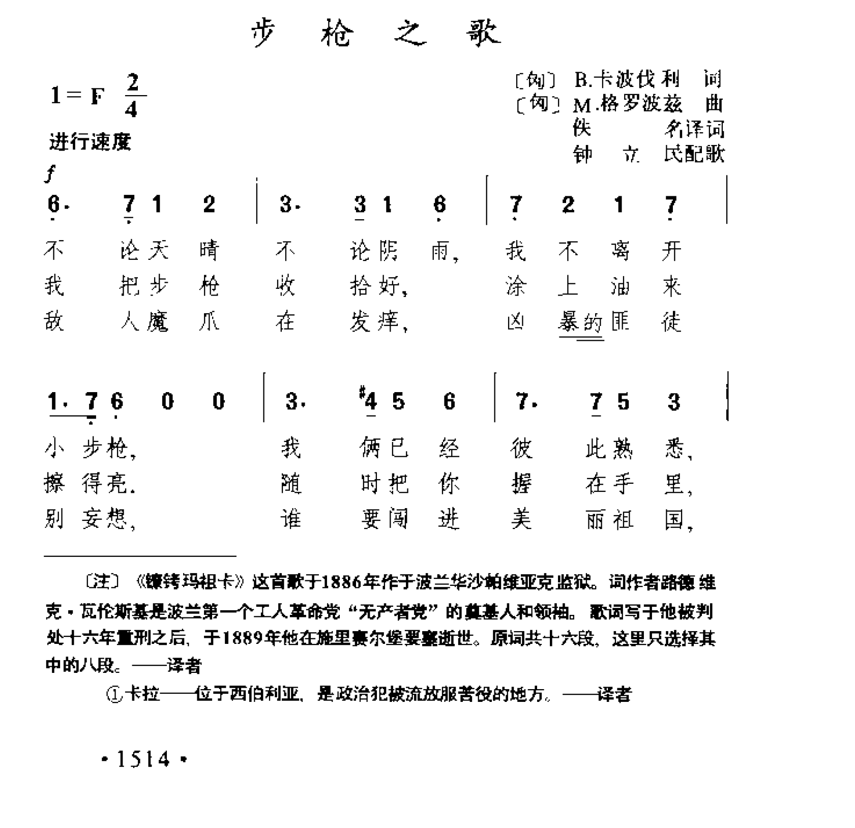 步枪之歌 (匈)格罗波兹曲简谱歌词是曲谱查询网于2025年02月09日 10:14:35更新在乐谱大全频道中的内容,收录在乐谱大全栏目中;曲谱查询网分享的步枪之歌 (匈)格罗波兹曲简谱五线谱高清图片,欢迎在线免费下载;曲谱查询网无需注册,即可直接下载海量歌曲谱与乐器学习相关资料。