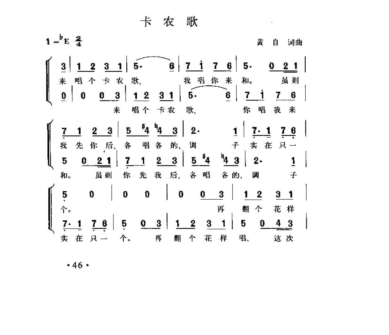 名称:卡农歌 黄自词曲国家:中国分类:曲谱子类:歌谱乐谱类型:简谱/五线谱文件格式:jpg