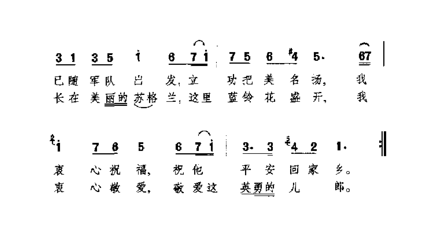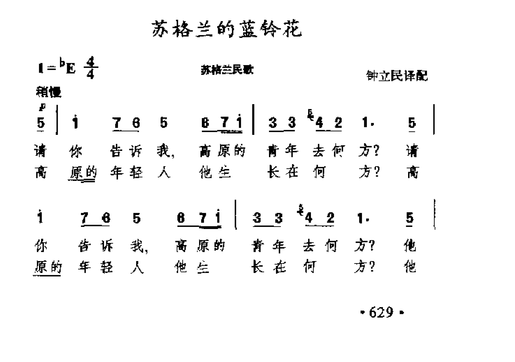 民间歌曲简谱:苏格兰的蓝铃花 苏格兰民歌