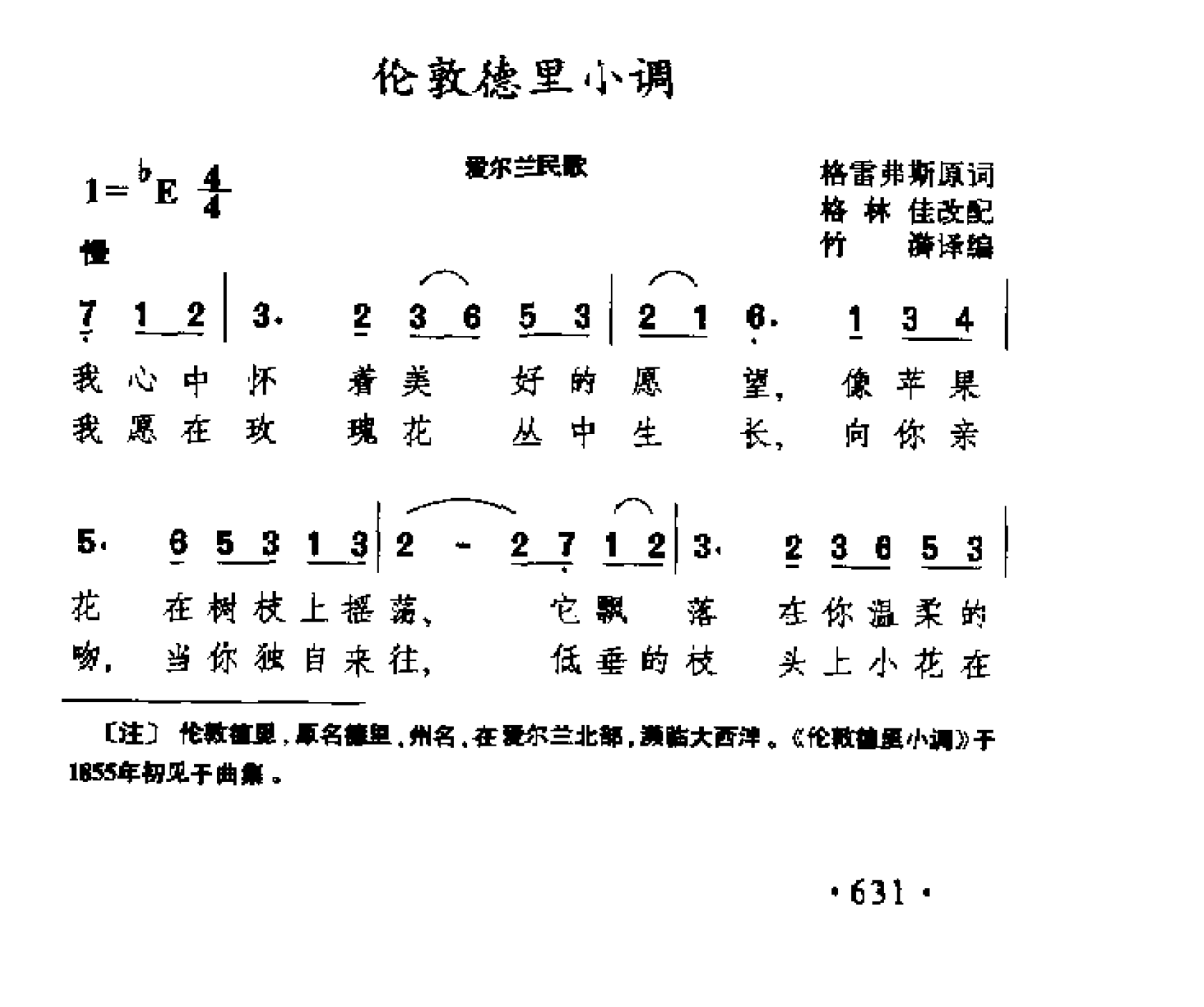 民间歌曲简谱:伦敦德里小调(爱尔兰民歌)
