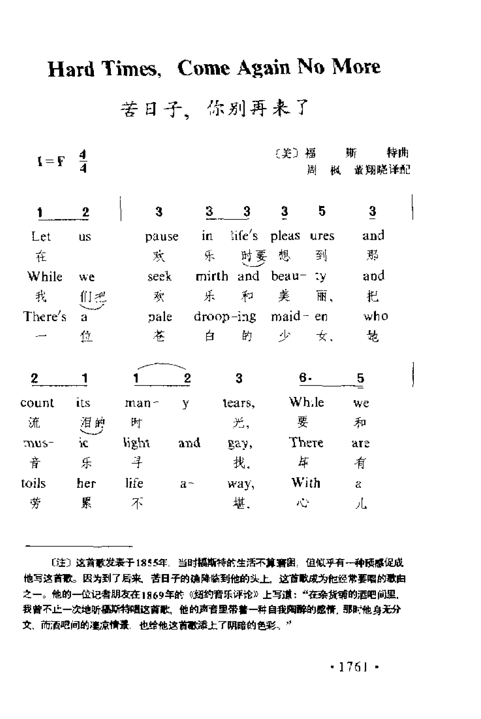 苦日子,你别再来了(美)福斯特曲