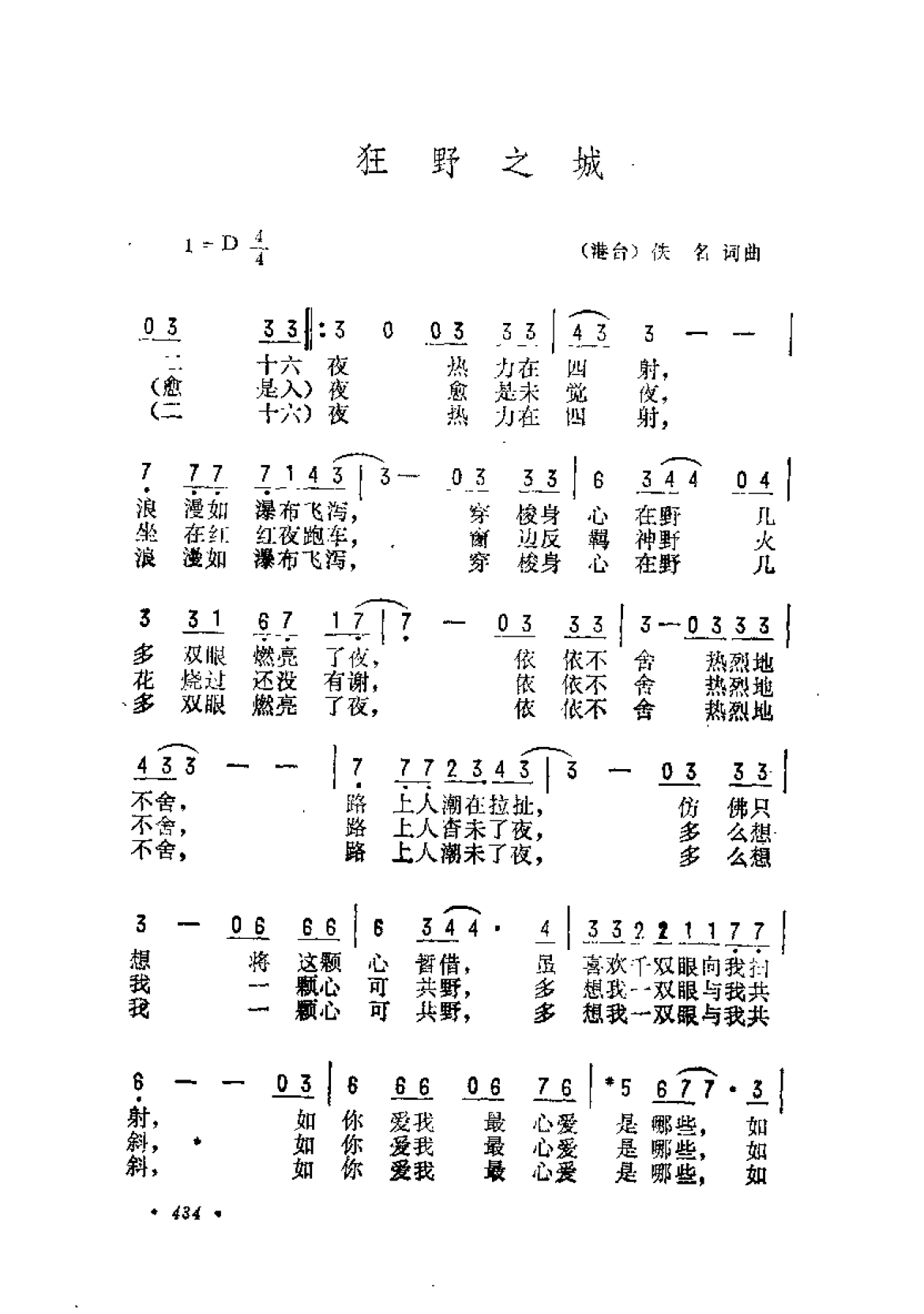 狂野之城(港台)佚名词曲