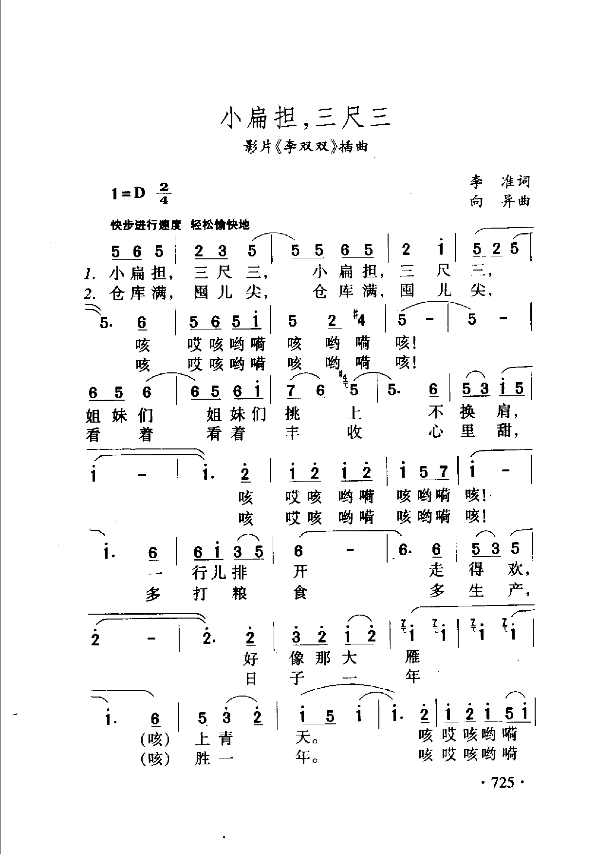 小扁担,三尺三(影片(李双双》插曲)李准词 向异曲