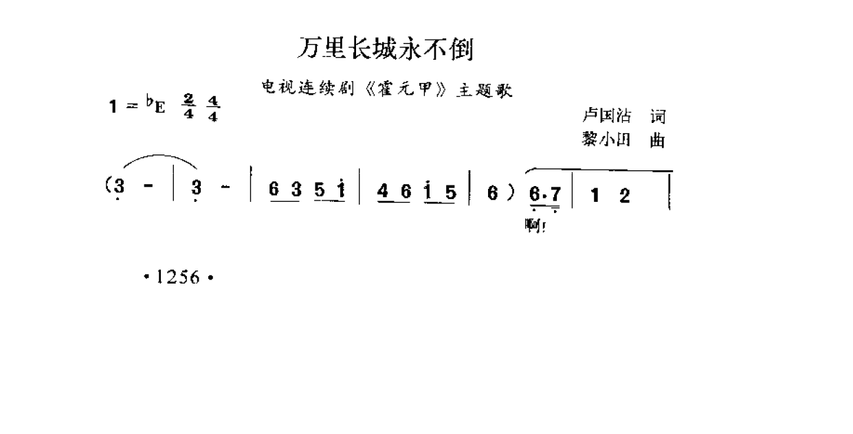 万里长城永不倒(电视连续剧《霍元甲》主题歌)卢国沾词 黎小田曲简谱歌词是曲谱查询网于2025年01月15日 13:49:03更新在乐谱大全频道中的内容,收录在乐谱大全栏目中;曲谱查询网分享的万里长城永不倒(电视连续剧《霍元甲》主题歌)卢国沾词 黎小田曲简谱五线谱高清图片,欢迎在线免费下载;曲谱查询网无需注册,即可直接下载海量歌曲谱与乐器学习相关资料。
