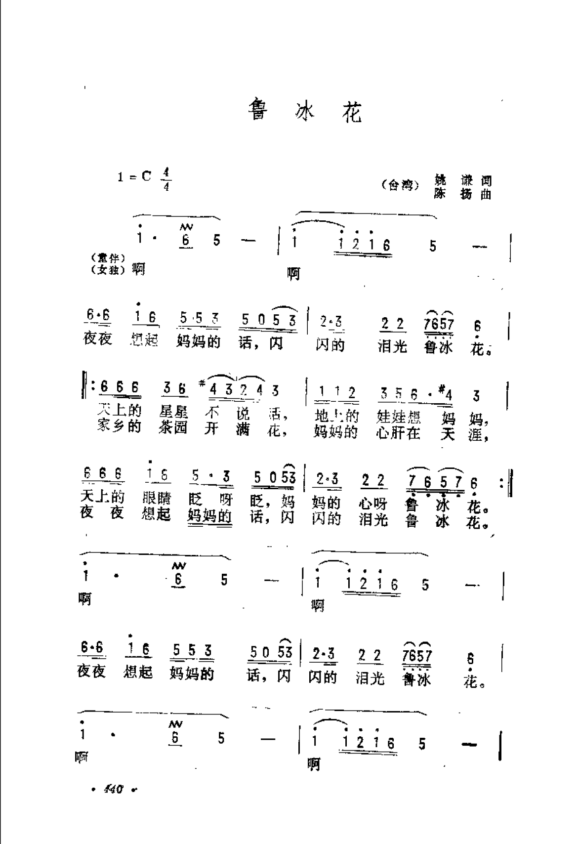 鲁冰花(台湾)姚谦词 陈扬曲简谱歌词是曲谱查询网于2025年02月13日 14:26:04更新在乐谱大全频道中的内容,收录在乐谱大全栏目中;曲谱查询网分享的鲁冰花(台湾)姚谦词 陈扬曲简谱五线谱高清图片,欢迎在线免费下载;曲谱查询网无需注册,即可直接下载海量歌曲谱与乐器学习相关资料。