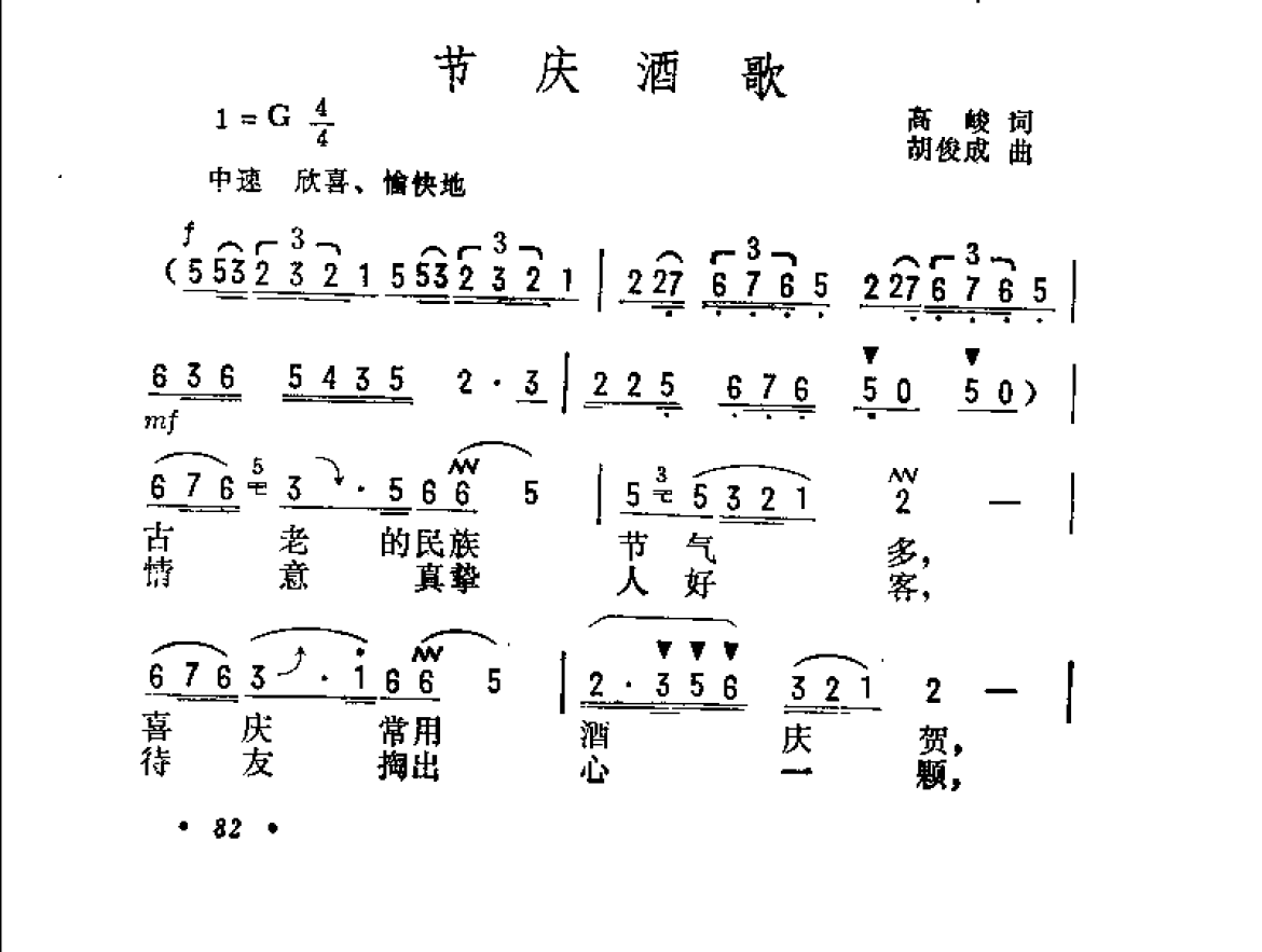 抒情歌曲简谱:节庆酒歌 高峻词 胡俊成曲