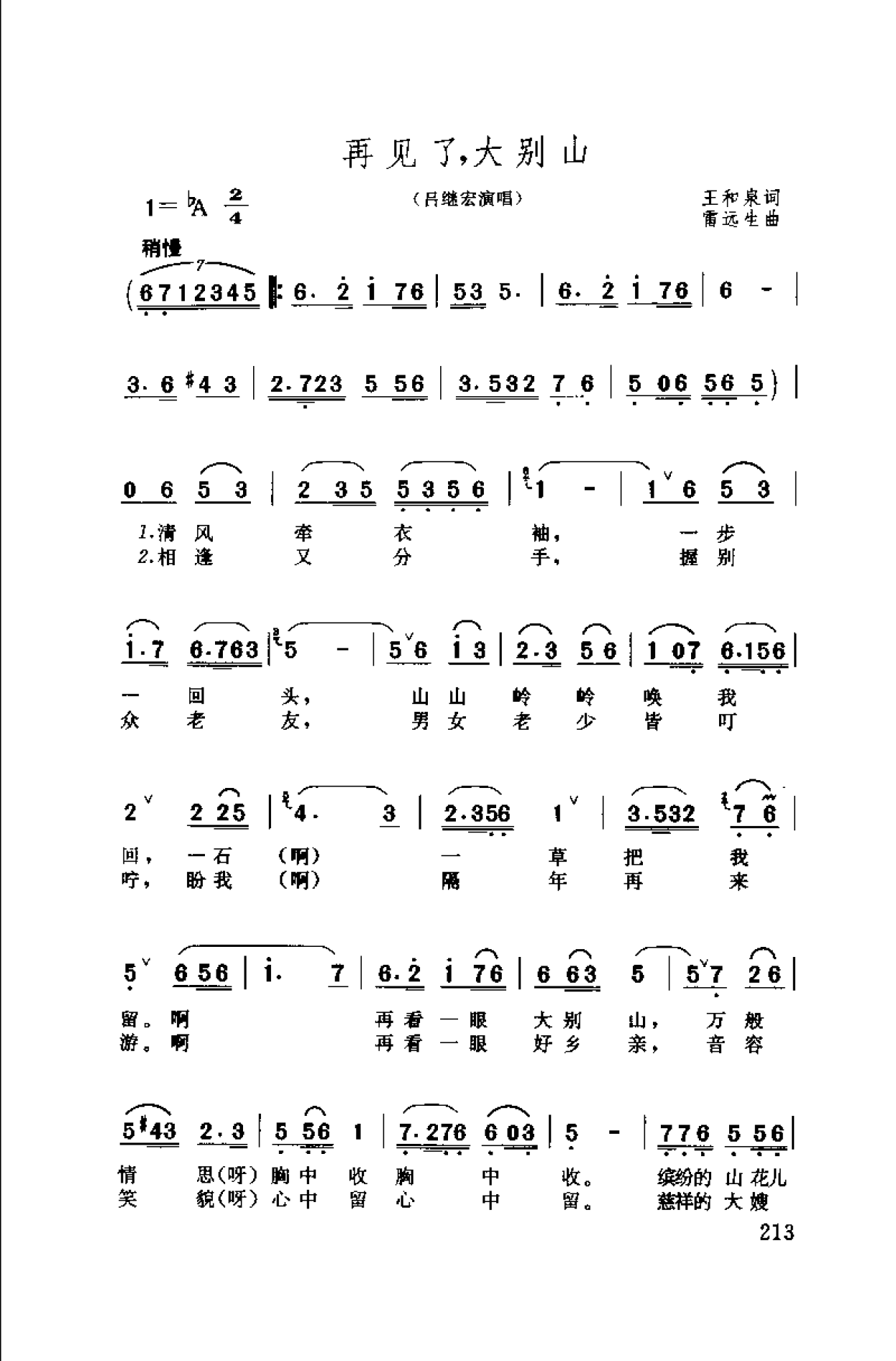 简谱:再见了,大别山·1993王和泉词 雷远生曲(吕继宏演唱)