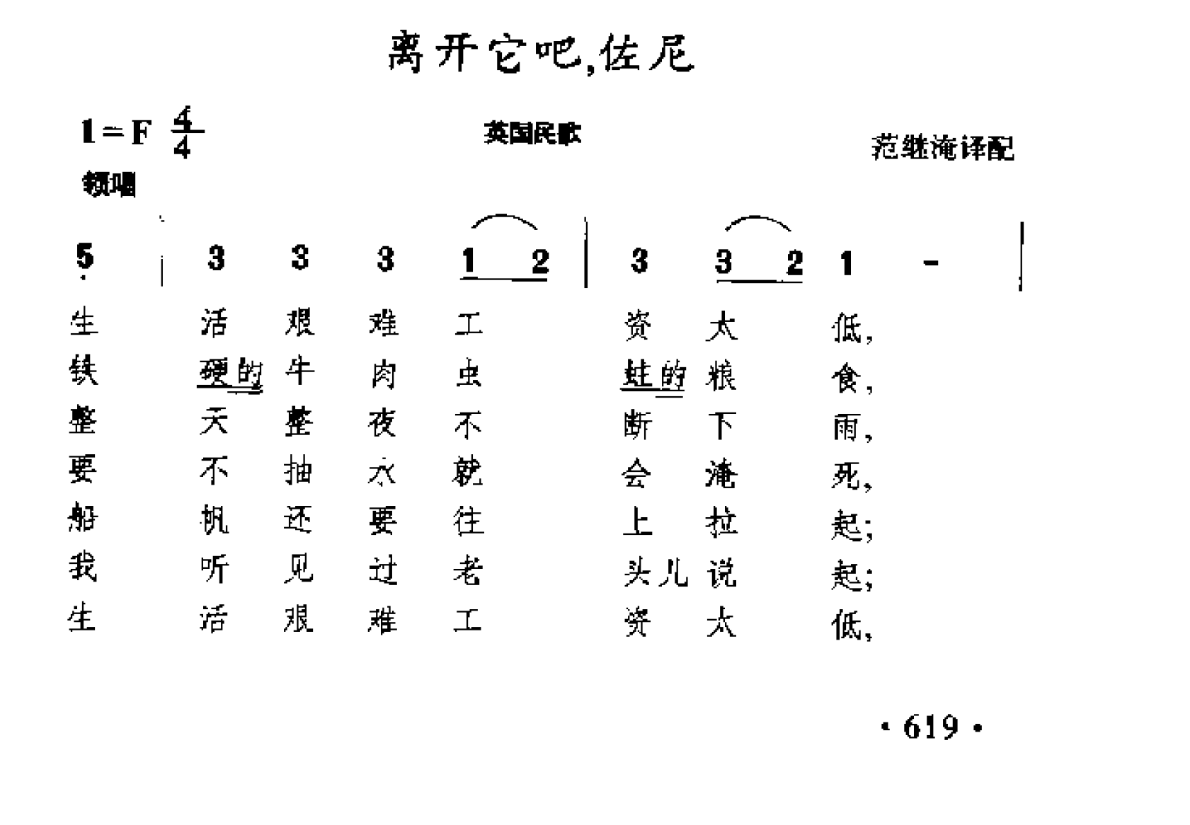 民间歌曲简谱:离开它吧,佐尼! 英国民歌