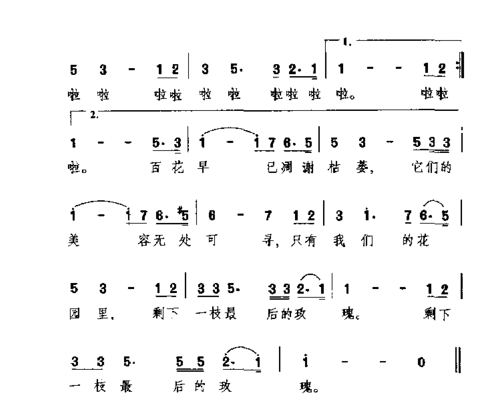 最后的玫瑰(德国影片《英俊少年》插曲)简谱歌词是曲谱查询网于2025年02月09日 10:06:14更新在乐谱大全频道中的内容,收录在乐谱大全栏目中;曲谱查询网分享的最后的玫瑰(德国影片《英俊少年》插曲)简谱五线谱高清图片,欢迎在线免费下载;曲谱查询网无需注册,即可直接下载海量歌曲谱与乐器学习相关资料。