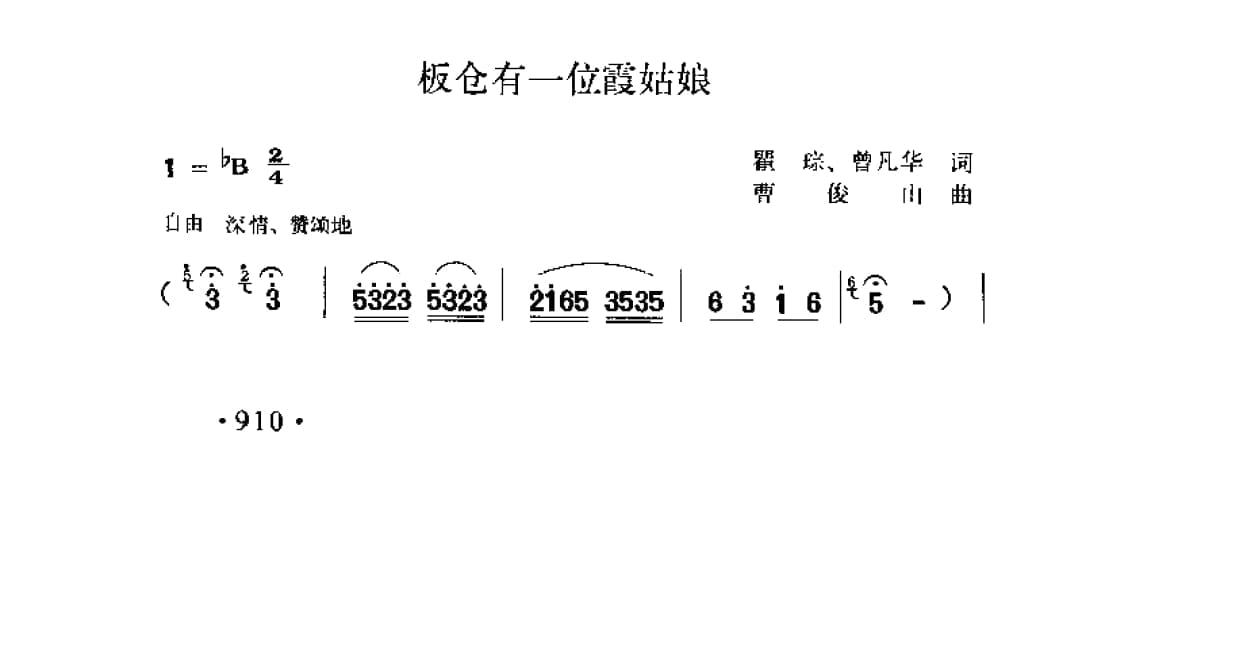名称:板仓有一位霞姑娘 瞿踪 曾凡华词 曹俊山曲