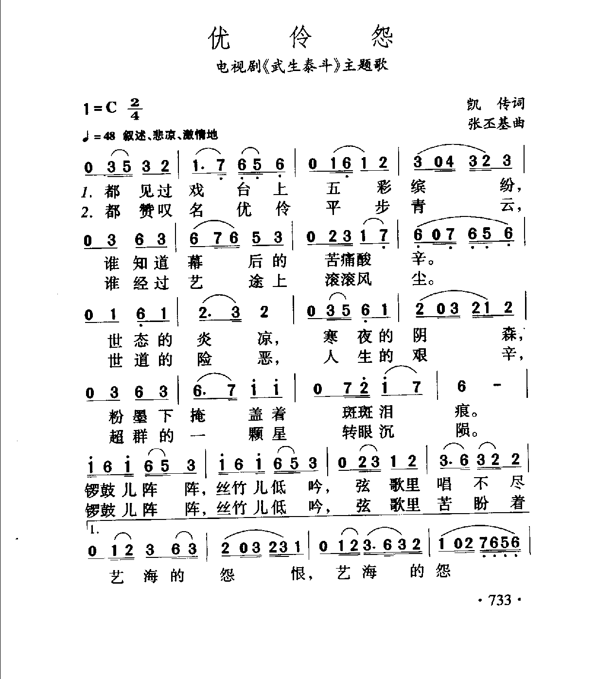 优伶怨(电视剧《武生泰斗》主题歌)凯传词 张丕基曲