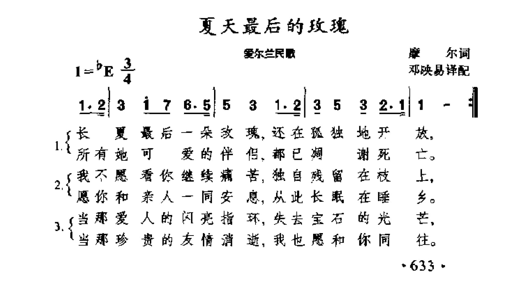 民间歌曲简谱:夏天最后的攻瑰(爱尔兰民歌)
