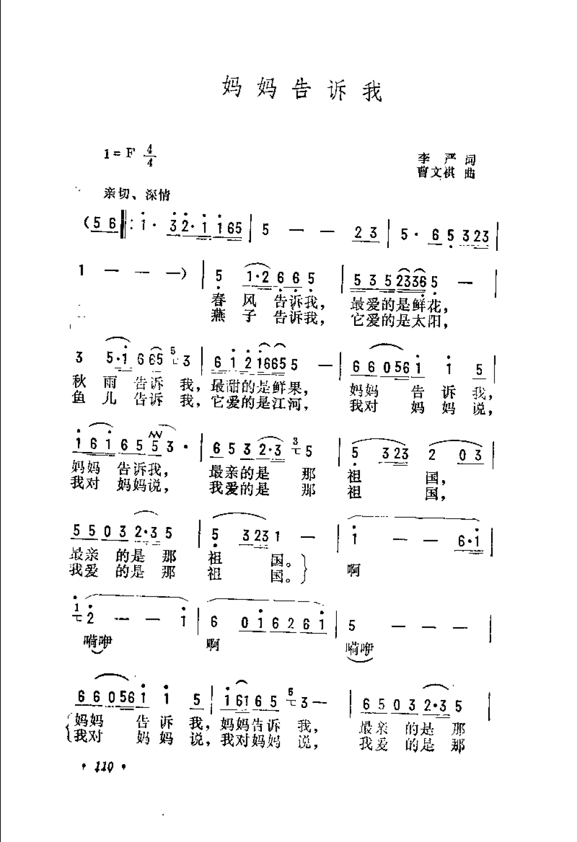 抒情歌曲简谱:妈妈告诉我 李严词 曹文祺曲