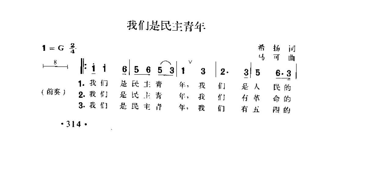 我们是民主青年 希扬词 马可曲简谱歌词是曲谱查询网于2025年01月12日 16:49:31更新在乐谱大全频道中的内容,收录在乐谱大全栏目中;曲谱查询网分享的我们是民主青年 希扬词 马可曲简谱五线谱高清图片,欢迎在线免费下载;曲谱查询网无需注册,即可直接下载海量歌曲谱与乐器学习相关资料。