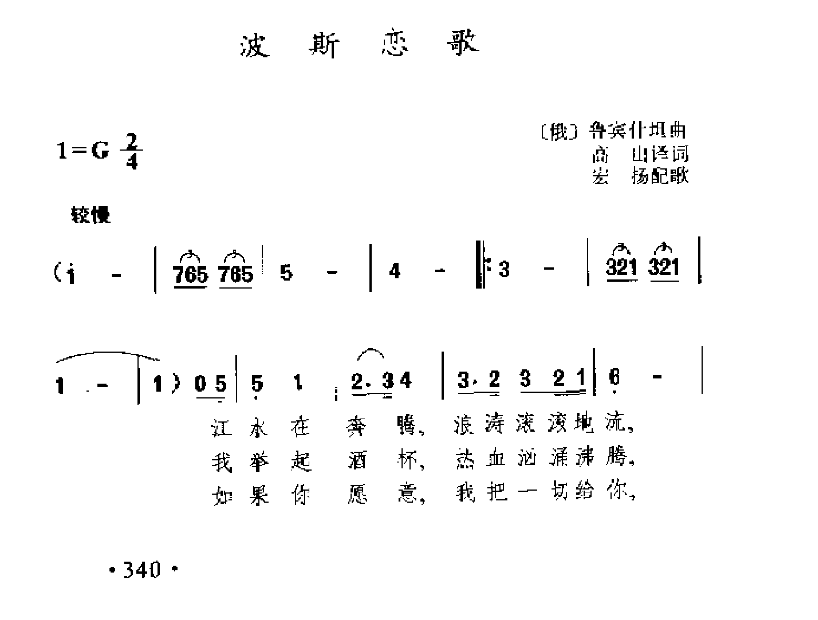 外国古典歌曲简谱:波斯恋歌(俄)鲁宾什坦曲 简谱歌曲集 外国名歌1000首