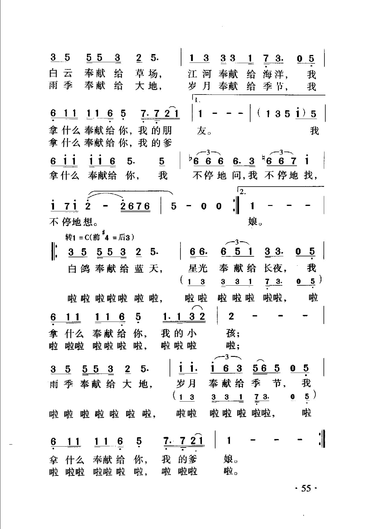 名称:奉献 杨立德词 翁孝良曲国家:中国分类:曲谱子类:歌谱乐谱类型:简谱/五线谱文件格式:jpg
