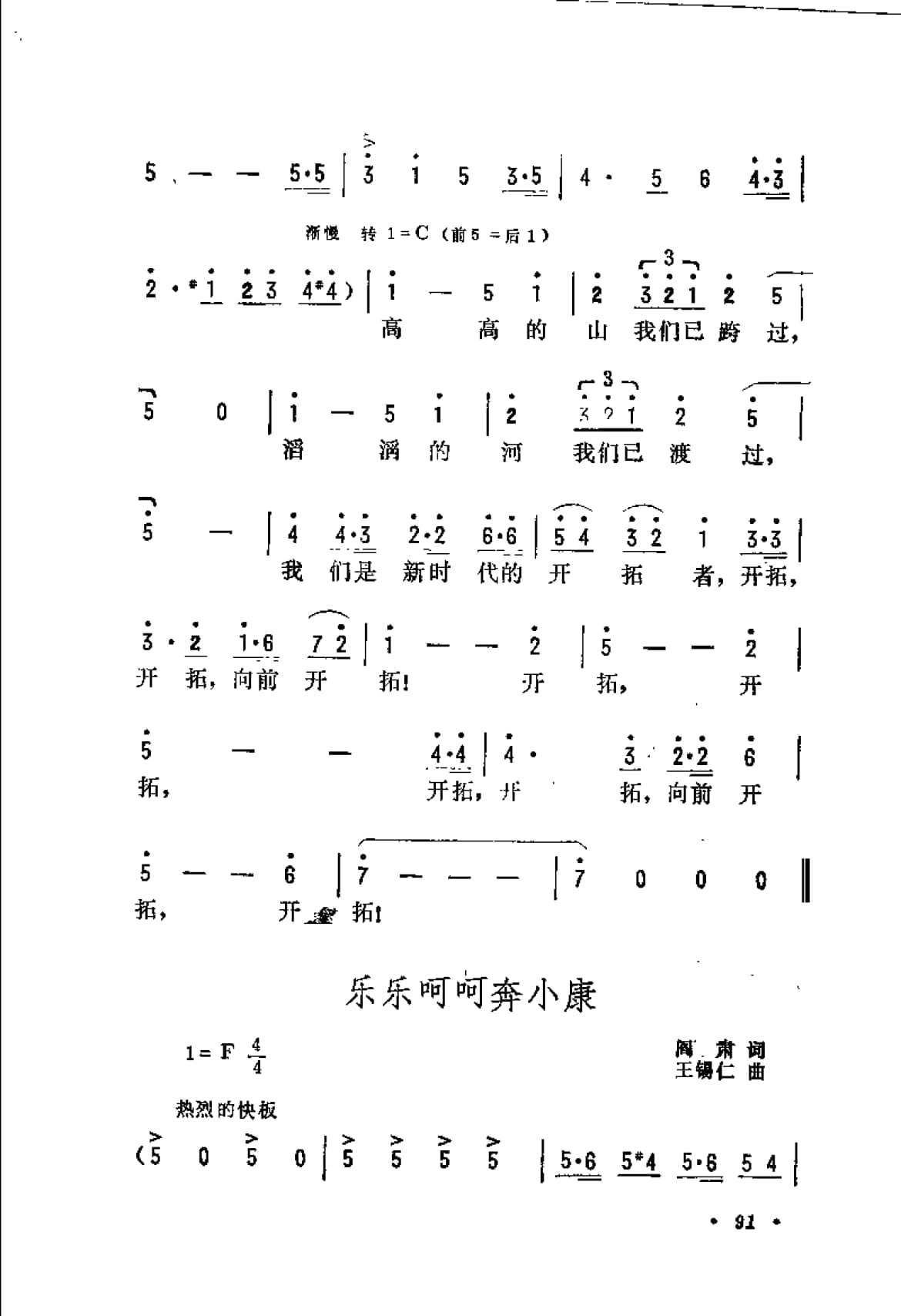 抒情歌曲简谱:开拓者进行曲 郑南词 雷雨声、杨余燕曲