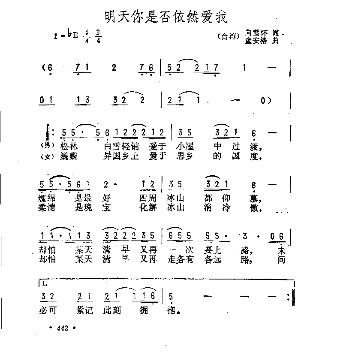 明天你是否依然爱我(台湾)向雪怀词 童安格曲