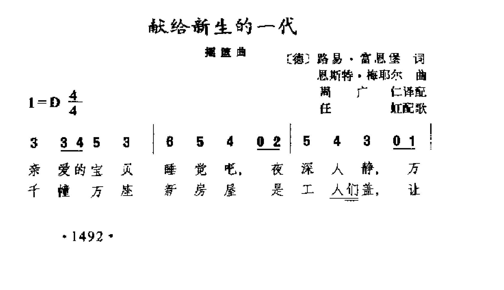 献给新生的一代(德)恩斯特 梅耶尔曲简谱歌词是曲谱查询网于2025年02月09日 09:59:45更新在乐谱大全频道中的内容,收录在乐谱大全栏目中;曲谱查询网分享的献给新生的一代(德)恩斯特 梅耶尔曲简谱五线谱高清图片,欢迎在线免费下载;曲谱查询网无需注册,即可直接下载海量歌曲谱与乐器学习相关资料。