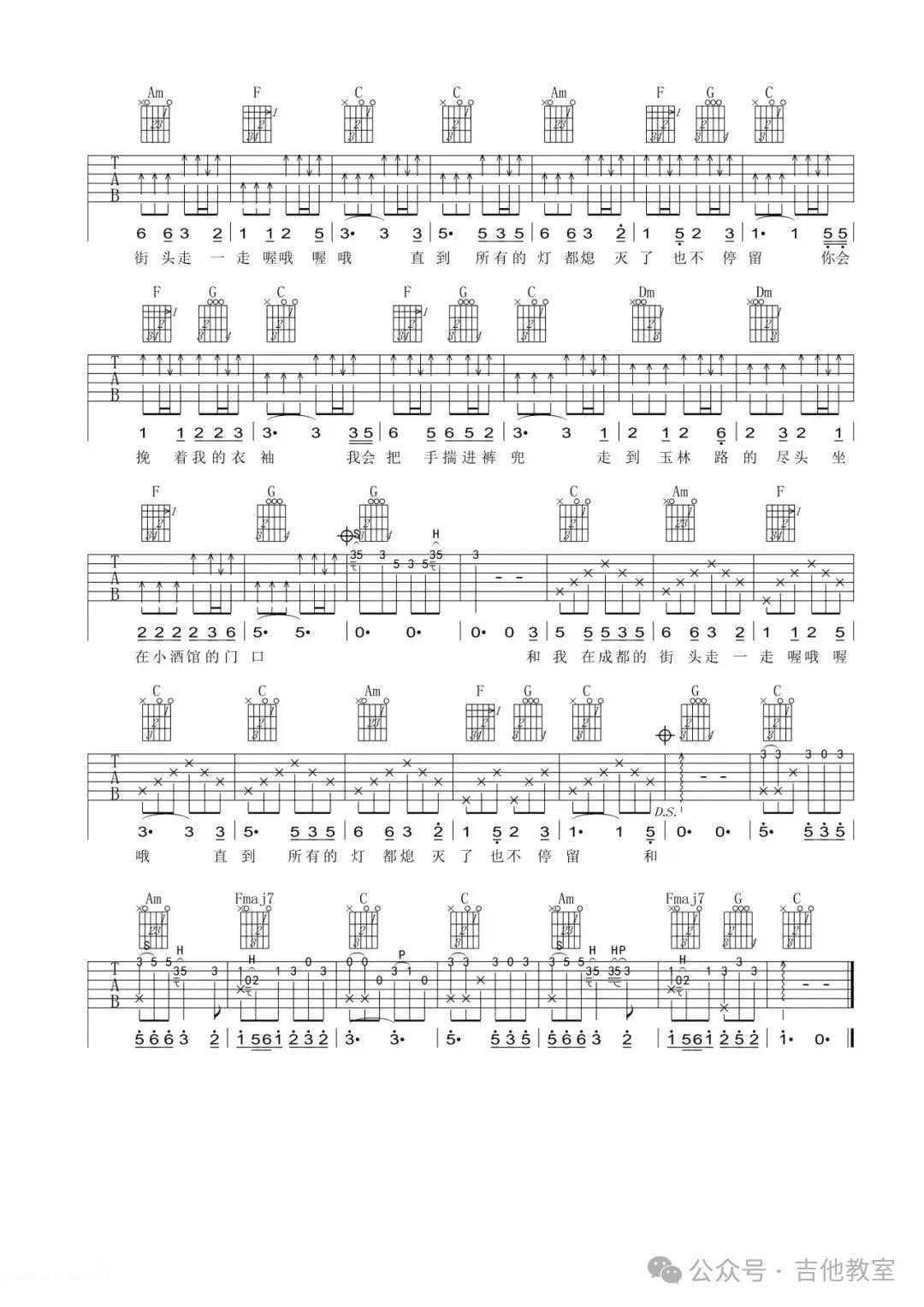 赵雷《成都》吉他谱