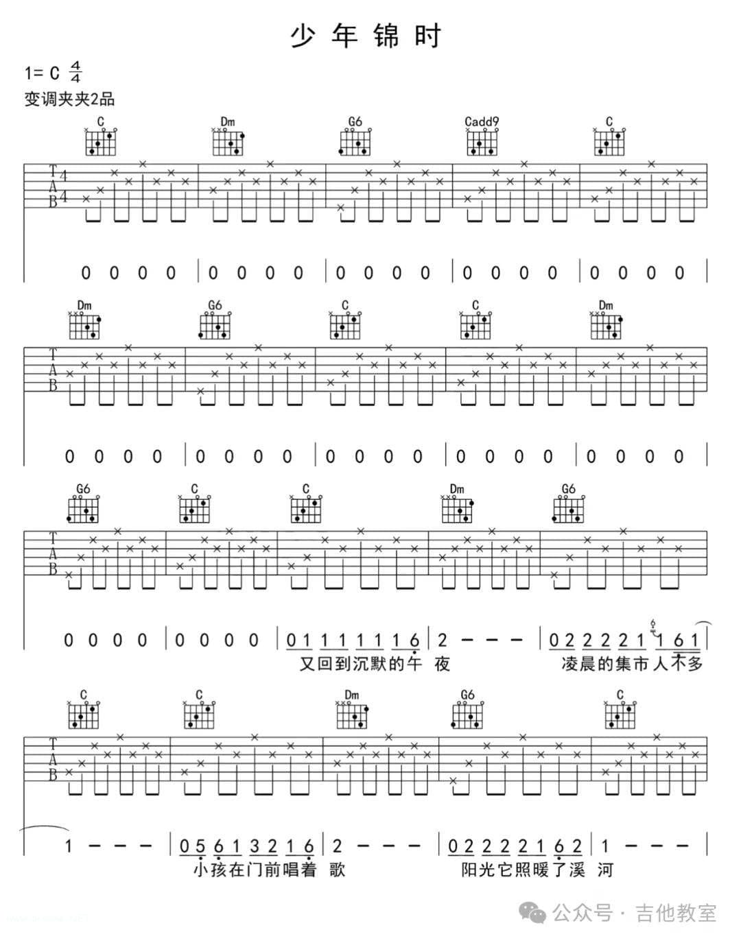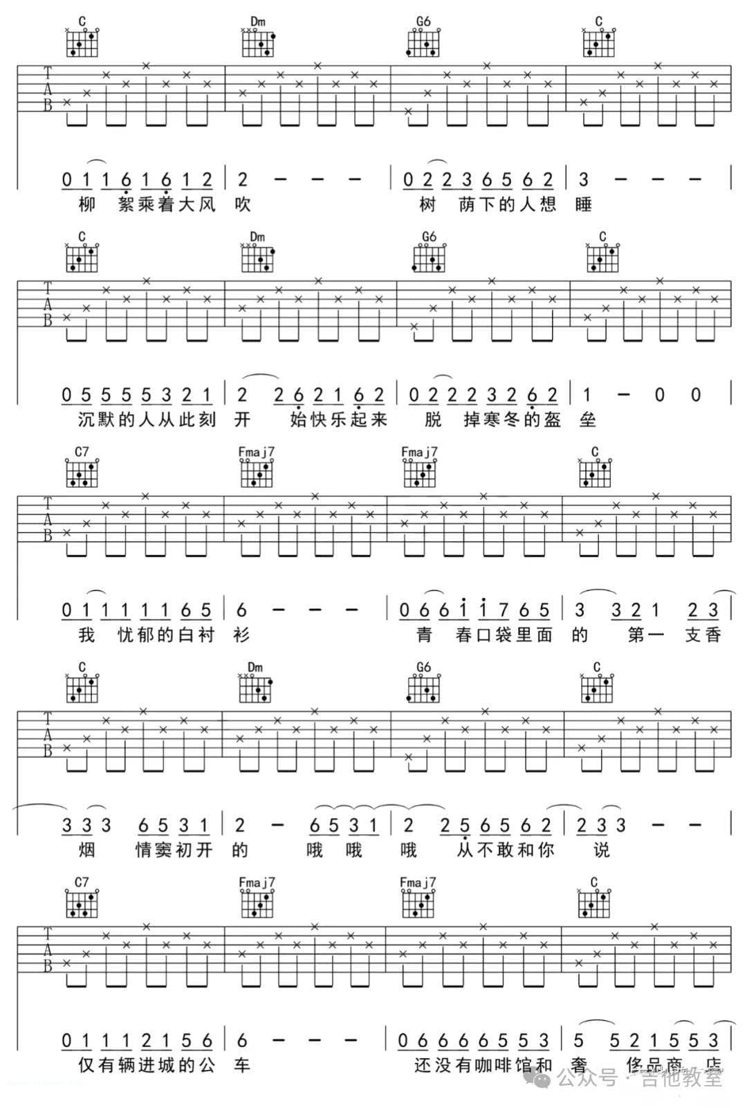 这首歌的旋律简单优美,和弦不复杂,适合初学者练习吉他弹唱技巧。