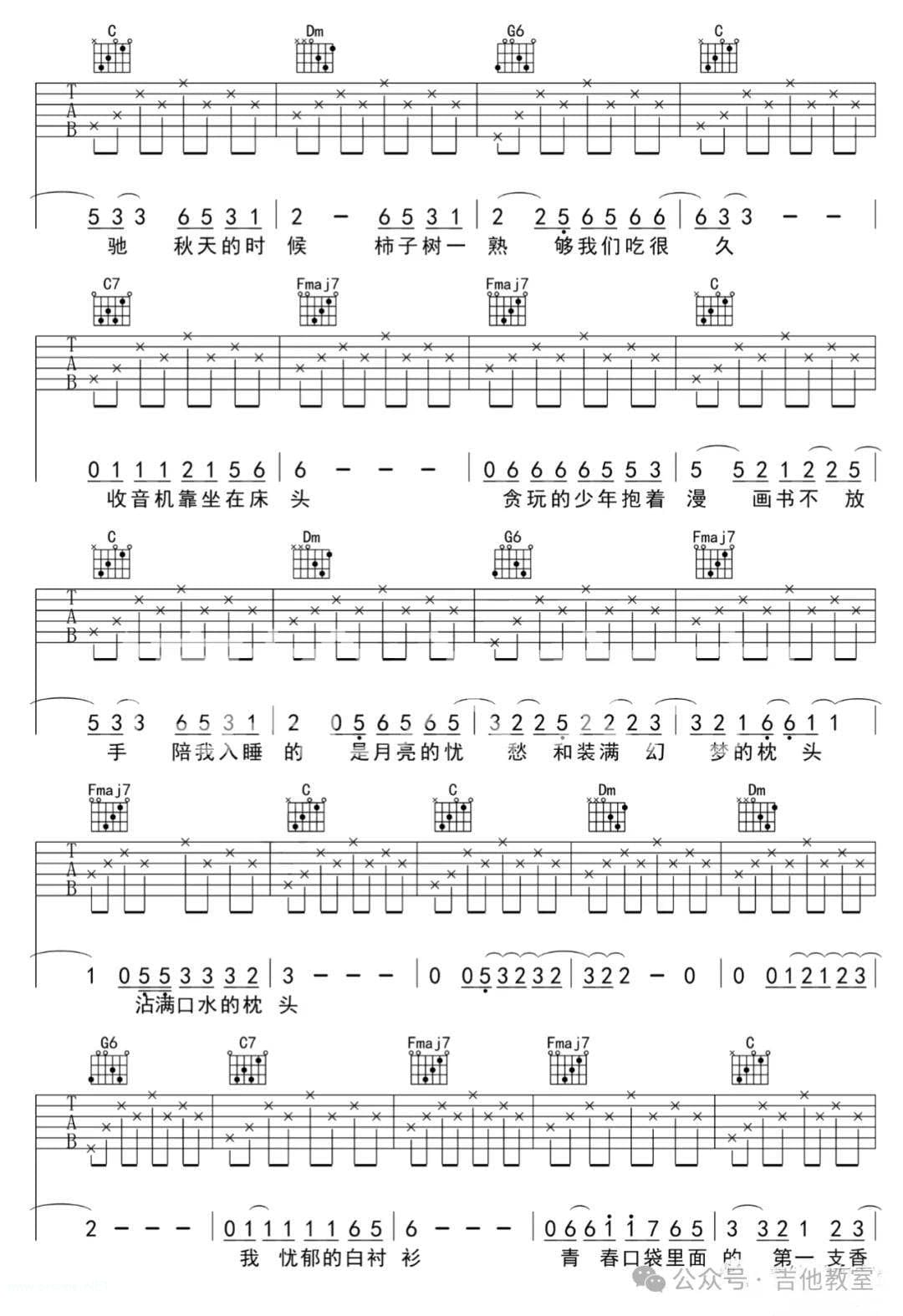 这首歌充满了怀旧和温情,和弦简单,适合初学者练习。